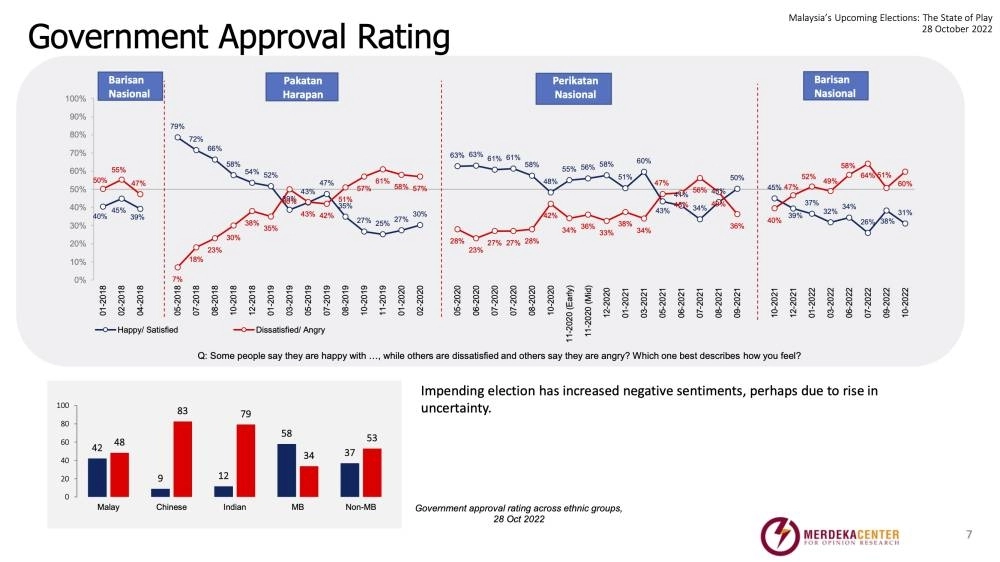 BN govt’s approval rating falls to only 31pc, Merdeka Center finds ahead of GE15