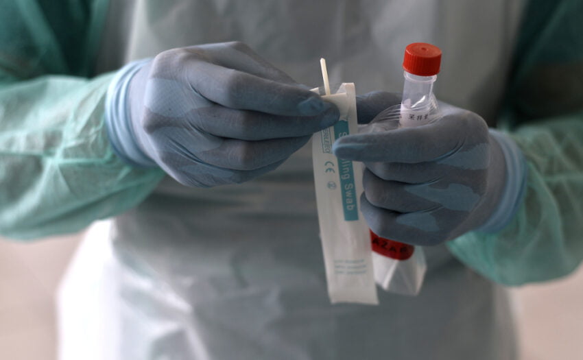 Selcare health officers take samples during a free screening of Covid-19 organised by the Selangor gtate government at Dewan Musa Muda, Shah Alam April 19, 2020. — Picture by Miera Zulyana