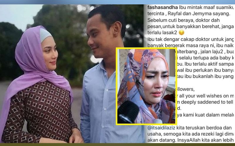 Berita sedih itu dikongsikan oleh Fasha menerusi Instagramnya sambil memohon maaf kepada suaminya Aidil Aziz serta anak-anaknya Rayfal dan Jemyma.