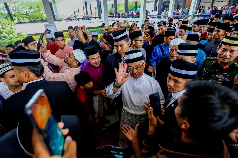 KUALA LUMPUR, June 5 — Yang di-Pertuan Agong, Al-Sultan Abdullah Ri’ayatuddin Al-Mustafa Billah Shah performed Aidilfitri prayers at Masjid Negara here, along with about 10,000 other worshippers in welcoming the month of Syawal.