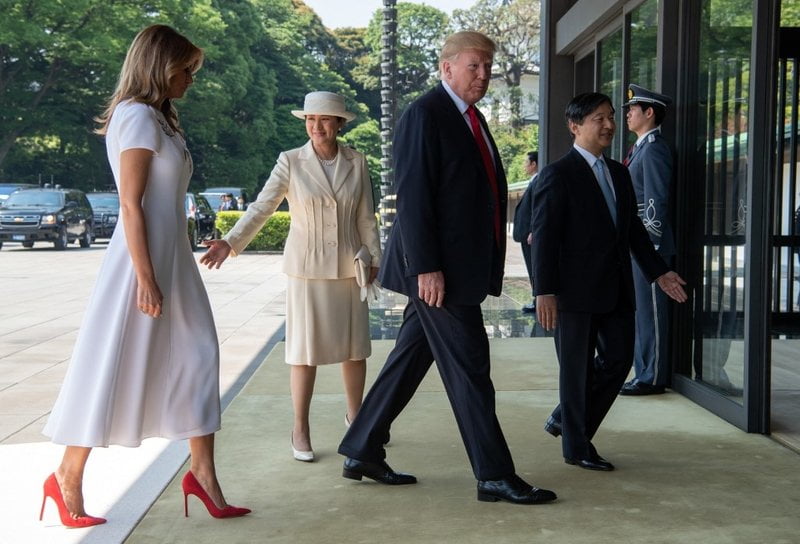 Trump, a fan of pomp and circumstance, was greeted by the new emperor and his Harvard-educated wife at the imperial palace in Tokyo in a formal welcome ceremony broadcast live on national television.