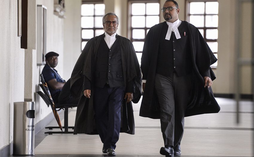 Tan Sri Muhammad Shafee Abdullah and Harvinderjit Singh are seen at the Kuala Lumpur Courts Complex June 20, 2019. — Picture by Miera Zulyana